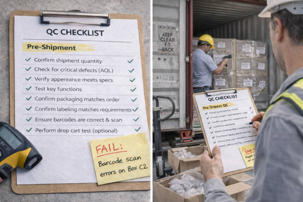 Support appearance checks, packaging checks, barcode review, defect reporting, and corrective action follow-up.